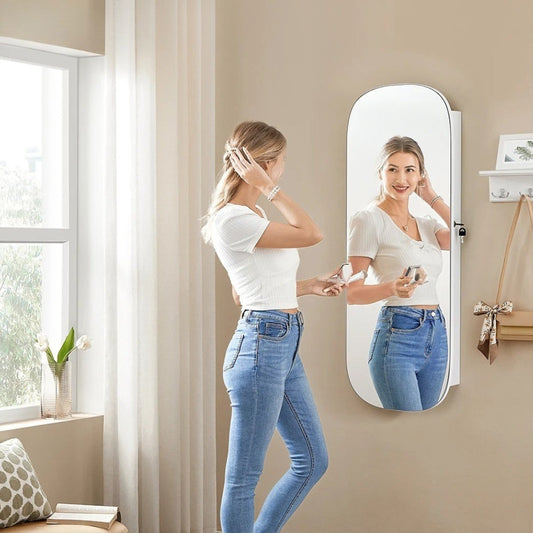 Armoire à Bijoux avec Miroir Plein Pied, Éclairage LED et Double Tiroir