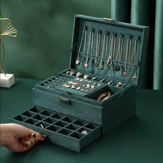 - Agencement : Compartiments essentiels pour bagues, boucles d’oreilles, colliers et petites chaînes.