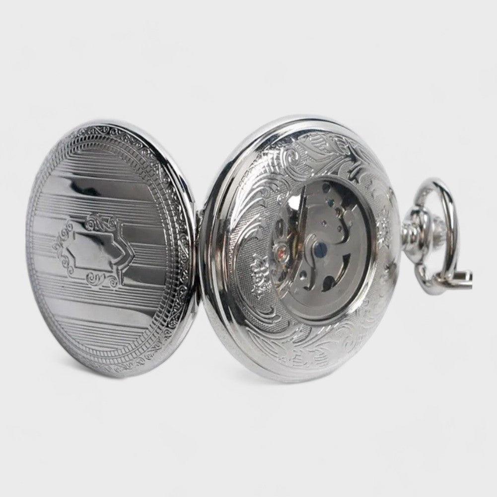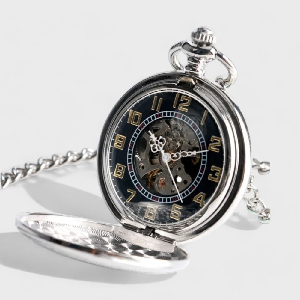 Cette montre à gousset est un véritable bijou ! Les détails gravés sont magnifiques, et elle fonctionne parfaitement. C'est exactement ce que je cherchais pour compléter mon look vintage. Merci pour ce produit unique !