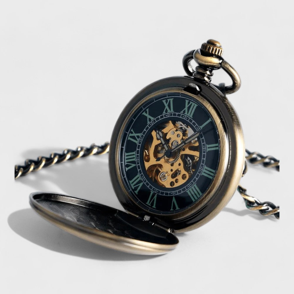 Montre à Gousset Squelette en Noir et Or – Un Bijou Horloger