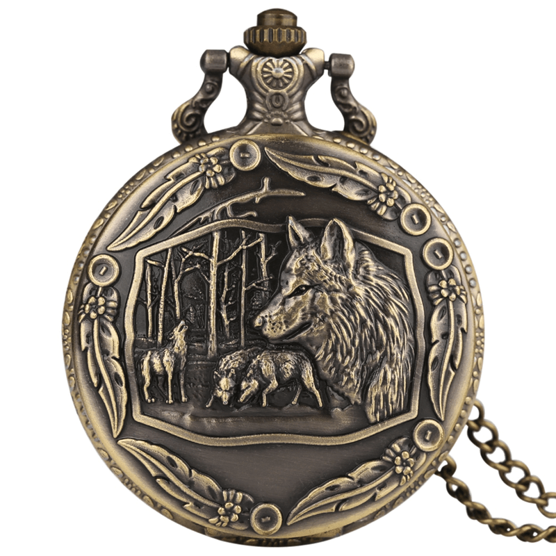 Montre à Gousset Meute de Loups et Plumes Indiennes – Force et Liberté