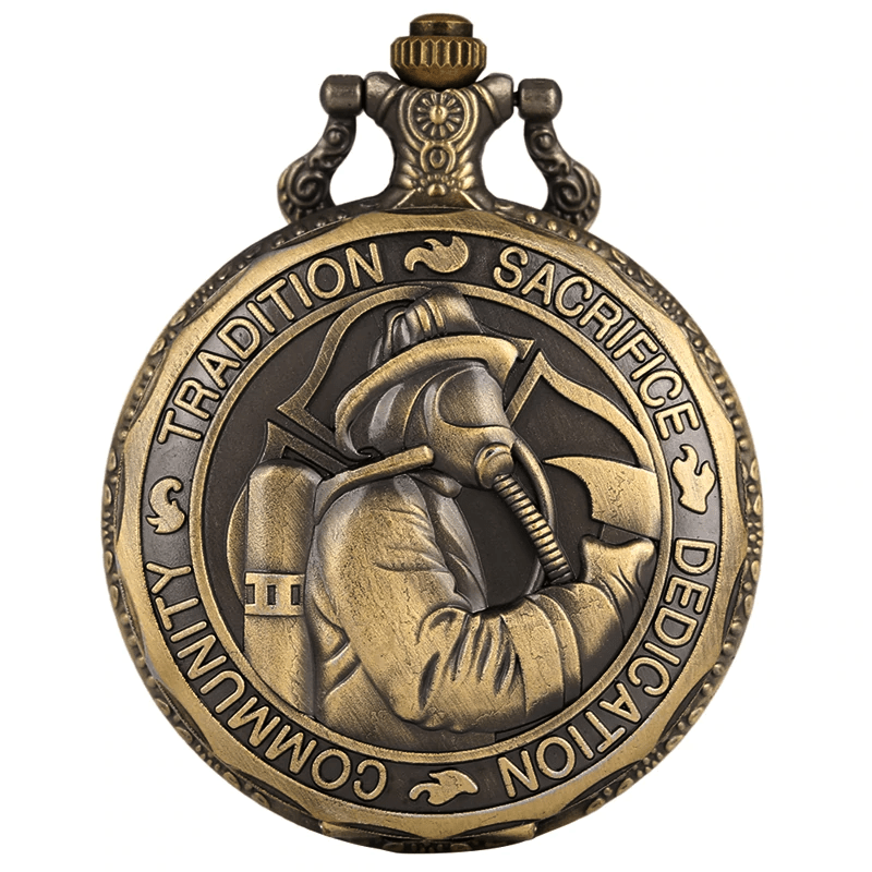 Chaque détail de cette montre à gousset rend hommage aux pompiers. C’est un moyen unique d’afficher votre soutien à la lutte contre les incendies et de porter un objet à la fois élégant et pratique.